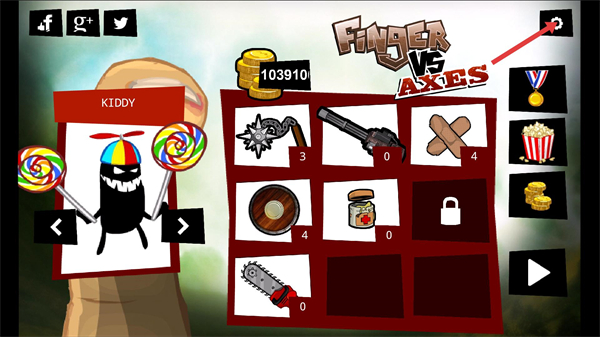 1、在游戲主界面點擊右上角設置按鈕,進入選項界面,可調整游戲配置,主界面還顯示了角色、金幣及道具庫存。