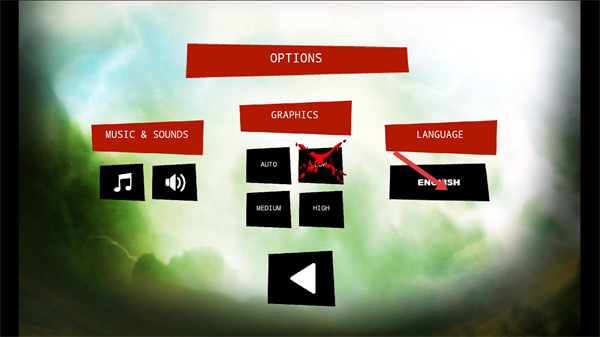 2、在OPTIONS界面選擇LANGUAGE板塊,當前默認語言為ENGLISH,該板塊用于切換游戲語言。