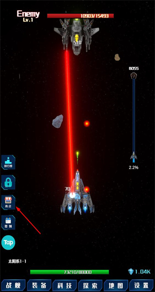 3、在游戲戰斗主界面,左側有商店功能按鈕,點擊商店,進入裝備商店界面。