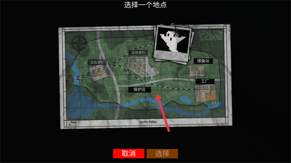2、在地圖界面選擇保護區等點擊選擇進入該區域,根據地圖上的標識規劃探索路線尋找資源點和安全區域提升生存幾率。