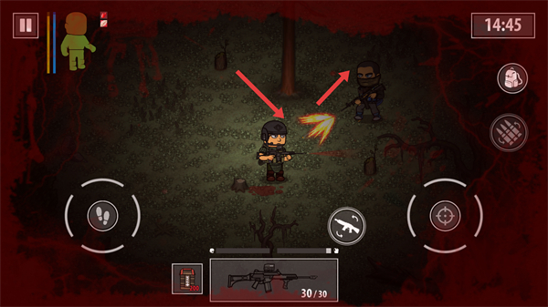 4、遭遇敵人時利用武器進行射擊注意躲避敵人的攻擊,關注角色的血量和彈藥情況合理利用地形優勢擊敗敵人提升戰斗技巧和生存能力。
