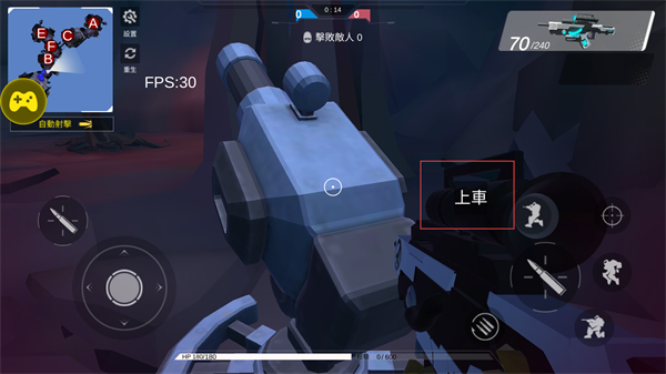 2、在戰場中找到載具,點擊上車按鈕進入載具,駕駛載具在科幻戰場中移動,提升戰場機動性。