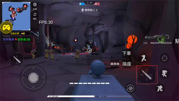 3、駕駛載具時點擊武器按鈕發起攻擊,還可操作下車、換座、切換攝像機,靈活應對蟲族與敵方機器人的攻擊。