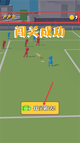 3、成功闖關后界面顯示闖關成功,可看到獲得的鑰匙和金幣數量,點擊開寶箱去按鈕,進入寶箱獎勵環節。