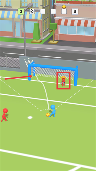 2、將球傳給接近對方球門區域的隊友后后,找準時機操控球員帶球突破或射門,瞄準對方門將把守的球門,嘗試將球射入得分。