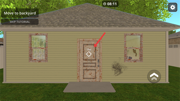 1、游戲開始時需前往帶有15m提示的房門處,進入房屋開啟后續任務,同時可選擇是否跳過教程,根據自身需求決定即可。