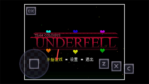1、在主界面選擇開始游戲,進入Underfell的冒險,這是傳說之下的同人作品,風格偏向暗黑殘暴。