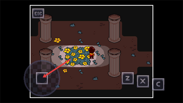 3、通過左側移動按鈕操控角色移動,離開初始的花朵區域,探索包含石柱的新場景,推進冒險進程。