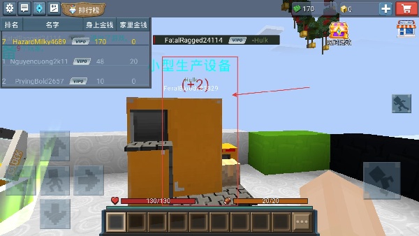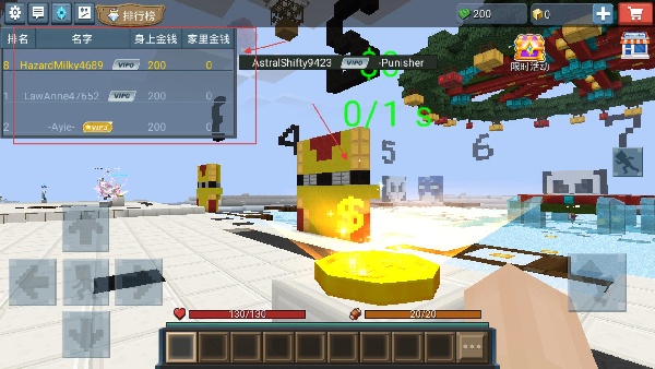 1、進入游戲界面左側顯示排行榜,可查看玩家的排名,當前目標是獲取場景中的資源,完成后可提升自身金錢數值。