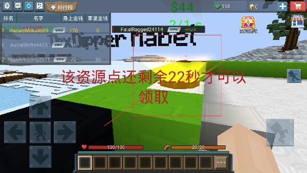 4、當玩家領取資源過后,資源點存在領取冷卻時間,當前該資源點還需等待22秒才可領取,期間可前往其他資源點收集資源。