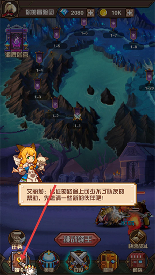 1、點擊抽卡進入招募界面,這是獲取新伙伴的核心入口,按提示招募伙伴可組建冒險團隊,為后續挑戰做準備。