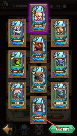 4、招募后點擊快速翻牌可一鍵查看所有獲得的伙伴,便于快速整理新招募的角色,推進團隊養成流程。