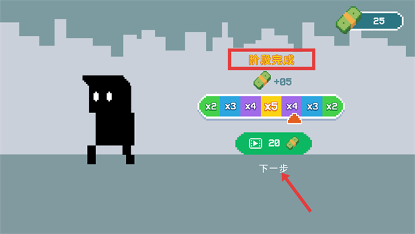4、完成關卡后會顯示階段完成可獲得金幣獎勵,點擊下一步進入下一個關卡,繼續挑戰新的場景和謎題。