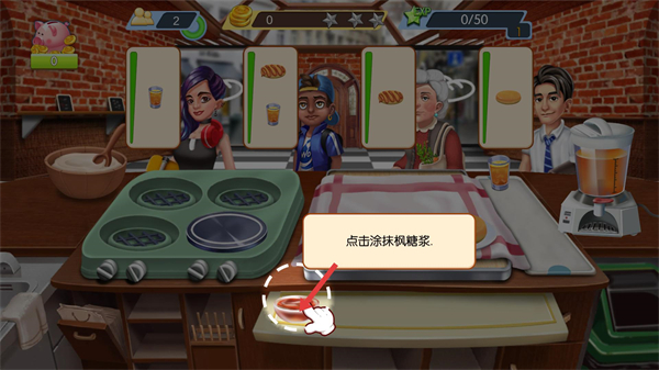 4、點擊涂抹楓糖漿,為甜品添加配料,這類裝飾步驟能提升菜品完成度,是滿足顧客口味需求的重要操作。