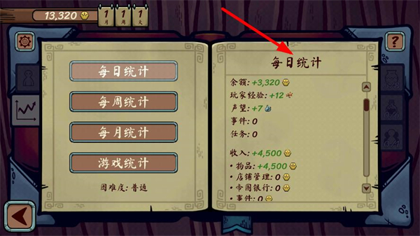 4、打開每日統計界面,可查看余額玩家經驗等數據,了解當日的收益與成長情況,輔助后續的交易決策。