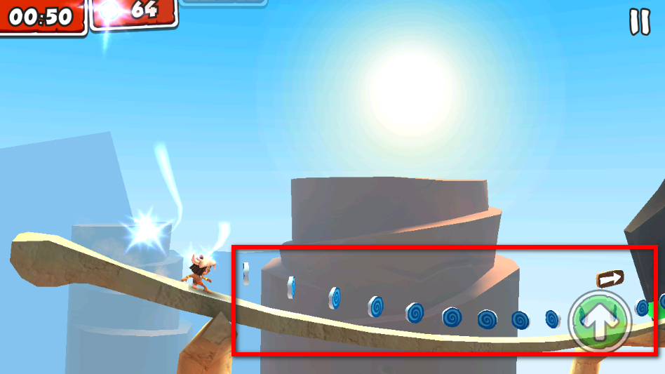 3、在長形通道移動時,收集沿途藍色螺旋道具,留意通道彎曲走向,控制角色穩定前進,盡量集齊出現的道具。