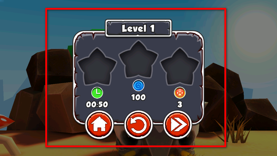 4、關卡結算界面可查看用時收集數和星級,點擊重玩按鈕重挑戰,點擊前進按鈕進下一關,繼續新的冒險收集任務。