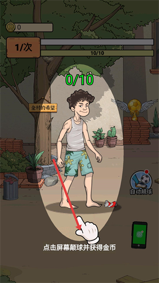 1、點擊屏幕進行顛球,每次操作可獲得金幣,這是積累資源的核心方式,需持續操作以完成當前輪次的目標。