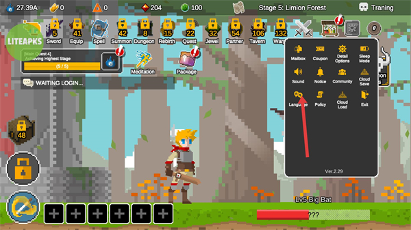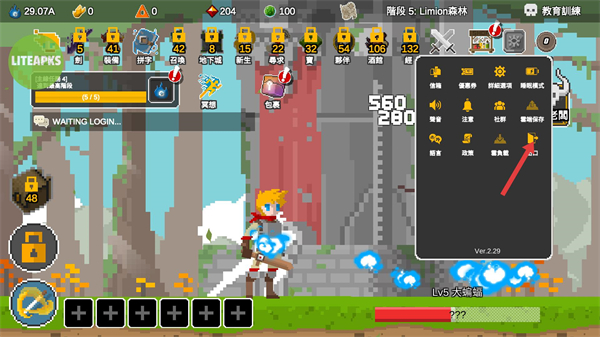 1、在Stage5LinionForest關卡界面,點擊右上角的Options按鈕,可打開設置菜單,調整游戲參數。