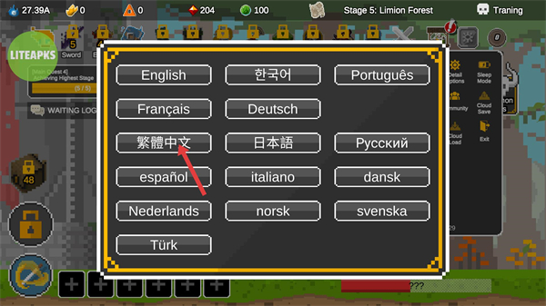 3、在語言列表中點擊中文,可將游戲界面切換為中文,便于更清晰地理解功能與劇情內容。