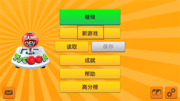1、能看到繼續新游戲讀取保存成就幫助高分榜等功能按鈕,可根據自身需求選擇對應選項,開啟游戲公司的經營歷程。