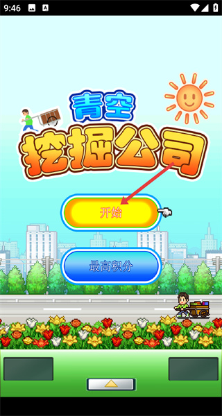 1、進入游戲界面后,點擊開始按鈕,進入青空挖掘公司的主場景,此時可看到當前的資金和場地相關布局信息。