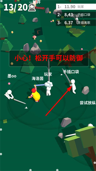 2、遭遇其他玩家攻擊時,松開手指即可進入防御狀態,避免刀長被對方削減,同時留意周圍玩家的動向,及時調整攻防節奏。
