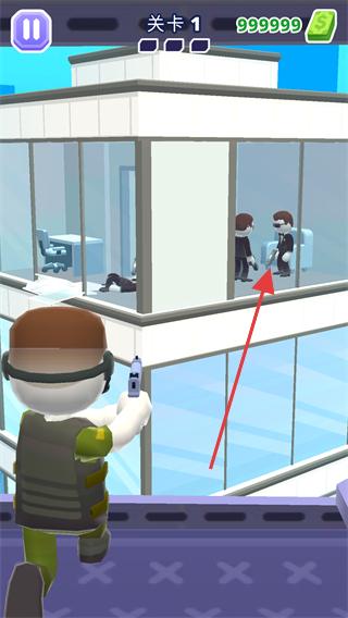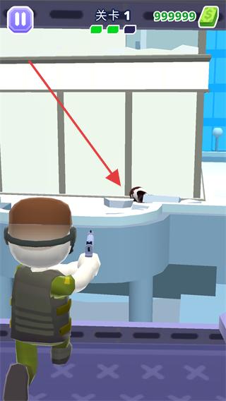 3、移動視角找到隱藏的目標,瞄準該目標射擊,清除場景中剩余的敵人,逐步推進關卡的完成進度。