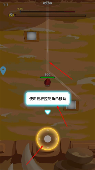 1、進入關卡,用底部搖桿控制角色移動,跟隨指引熟悉操作,按路徑前行探索場景。