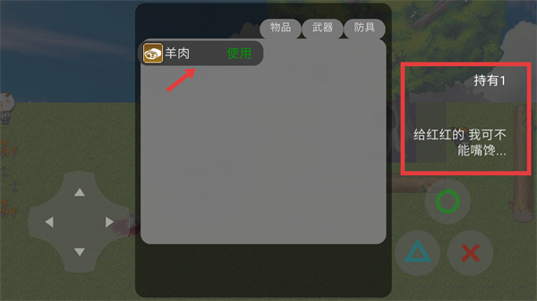 4、進入背包界面后,選擇羊肉點擊使用即可消耗該物品,通常會觸發對應的效果。