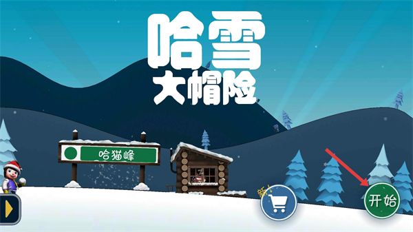 1、右側有【開始】按鈕,點擊該按鈕即可進入游戲關卡,開啟滑雪冒險流程,按提示推進游戲進程。