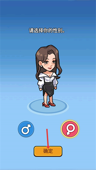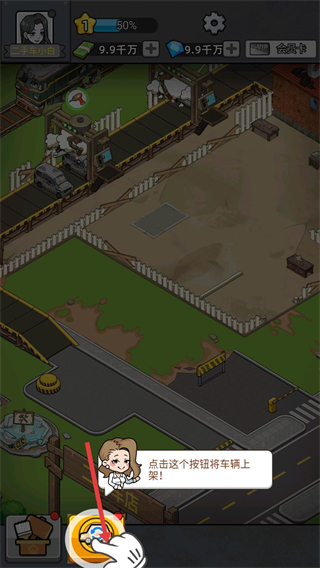 1、選擇性別如女性后點擊確定,完成角色創建,進入二手車經營的核心玩法界面。