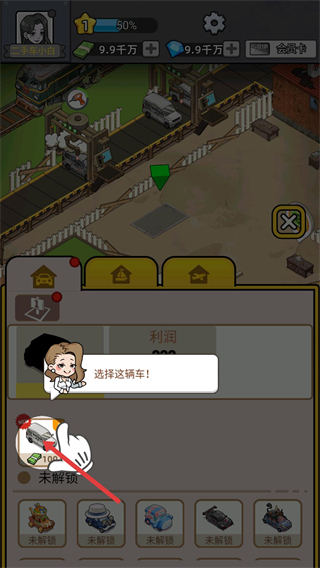 3、在車輛選擇界面點擊目標車輛如未解鎖的車型,選定后即可將其納入待處理的經營流程。