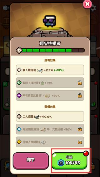 2、查看頂尖挖掘者的增益效果,包含多種屬性提升,還有裝置效果,可消耗對應資源點擊升級按鈕提升該挖掘者的能力。