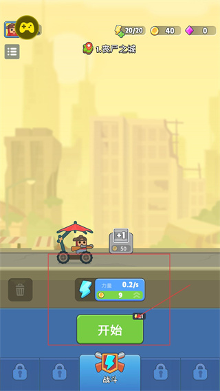 1、在準備界面,消耗9金幣可提升力量產出速度,點擊開始進入關卡,還可消耗50金幣增加出戰單位,提升初始戰力。