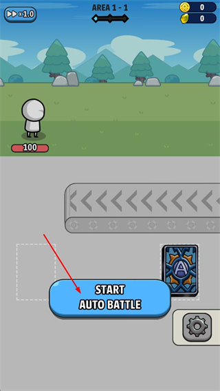 1、初始界面中,點擊START AUTO BATTLE按鈕開啟自動戰斗模式,該模式適合前期推進1-1關卡,能快速熟悉游戲基礎戰斗規則與流程。