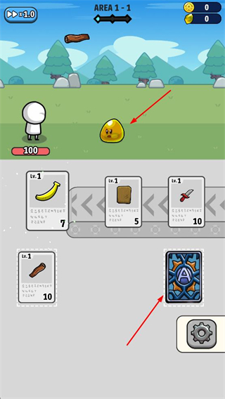 2、戰斗場景遇怪物對手時,挑選界面內適配的武器類卡牌點擊使用,攻擊敵人需關注卡牌數值與消耗,合理搭配卡牌提升對戰效率。