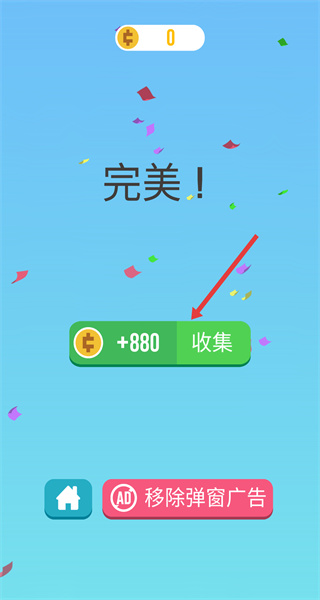 4、當成功擊倒所有目標球瓶后,關卡會顯示通關提示,此時點擊對應的按鈕,即可收集本次關卡獲得的獎勵,隨后進入下一個關卡。