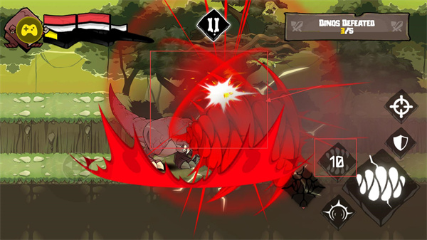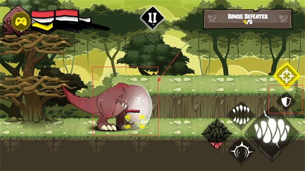 4、玩家使用技能擊敗敵方恐龍后,自身會獲得增益效果,結合技能循環,可快速完成擊敗5只恐龍的關卡目標,推進游戲進度。