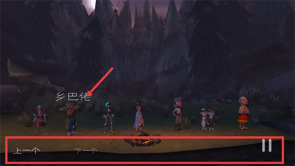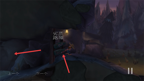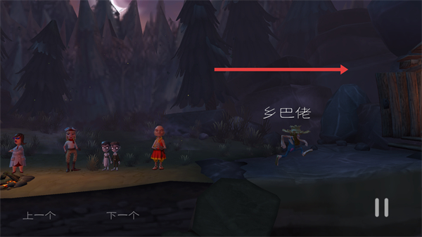 2、選定角色后就需要操控選定角色如鄉巴佬,拖動屏幕操控角色向右邊移動,右側出現木屋場景,準備進入后續的拿道具場景。