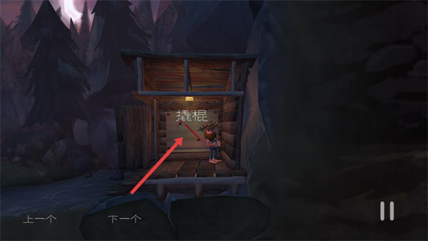 3、進入木屋場景后會遇到被標注撬棍的工具,操控角色靠近可互動獲取撬棍,這是探險中的關鍵道具、后續能用于破除障礙推進流程。