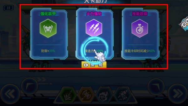 2、選擇不同的強化選項,比如火力強化能提升攻擊力,強化裝甲可增加防御,按需求挑選后完成強化,增強機甲的戰斗能力。