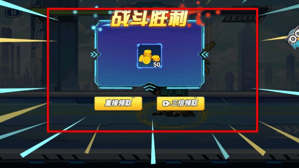 4、戰斗勝利后會獲得對應的金幣獎勵,可選擇直接領取或觀看內容獲取三倍獎勵,積累獎勵用于后續的機甲強化或裝備升級。