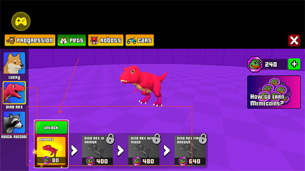 3、恐龍類寵物同樣需消耗80枚特殊貨幣解鎖基礎形態,其進階形態包含裝甲、武器等配置,不同類型寵物的進階方向存在差異化設計。