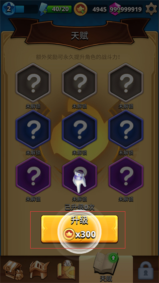 1、在天賦界面點擊升級按鈕,消耗資源解鎖對應天賦,該天賦會永久提升角色的戰斗能力。
