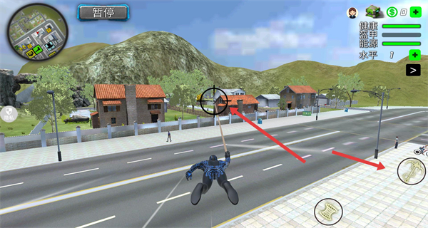 4、在場景點擊右側技能圖標,可釋放對應能力如繩索移動,結合角色移動與技能組合可實現快速戰斗壓制。