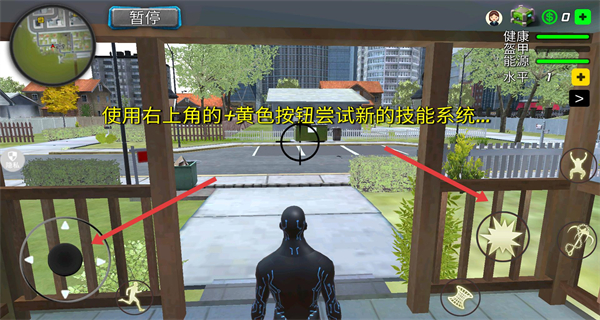 2、左側虛擬搖桿控制角色移動,右側技能按鈕釋放特殊能力,右上角添加按鈕可解鎖新技能系統輔助戰斗或探索。