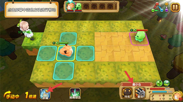 3、在迷宮對戰環節,拖動寵物到對應區域觸發移動,使用集火等功能攻擊敵方單位,按戰斗提示推進流程,擊敗對手完成關卡挑戰。