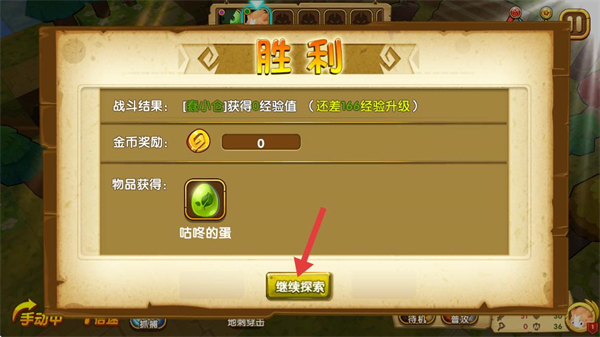 4、戰斗勝利后,可查看獲得的經驗值與物品獎勵,點擊繼續探索進入下一個關卡,持續推進游戲進程,解鎖更多迷宮內容。