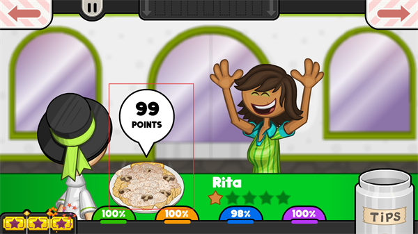 4、將制作好的餐品遞給顧客Rita,獲得99POINTS的評分,查看顧客的滿意度反饋。